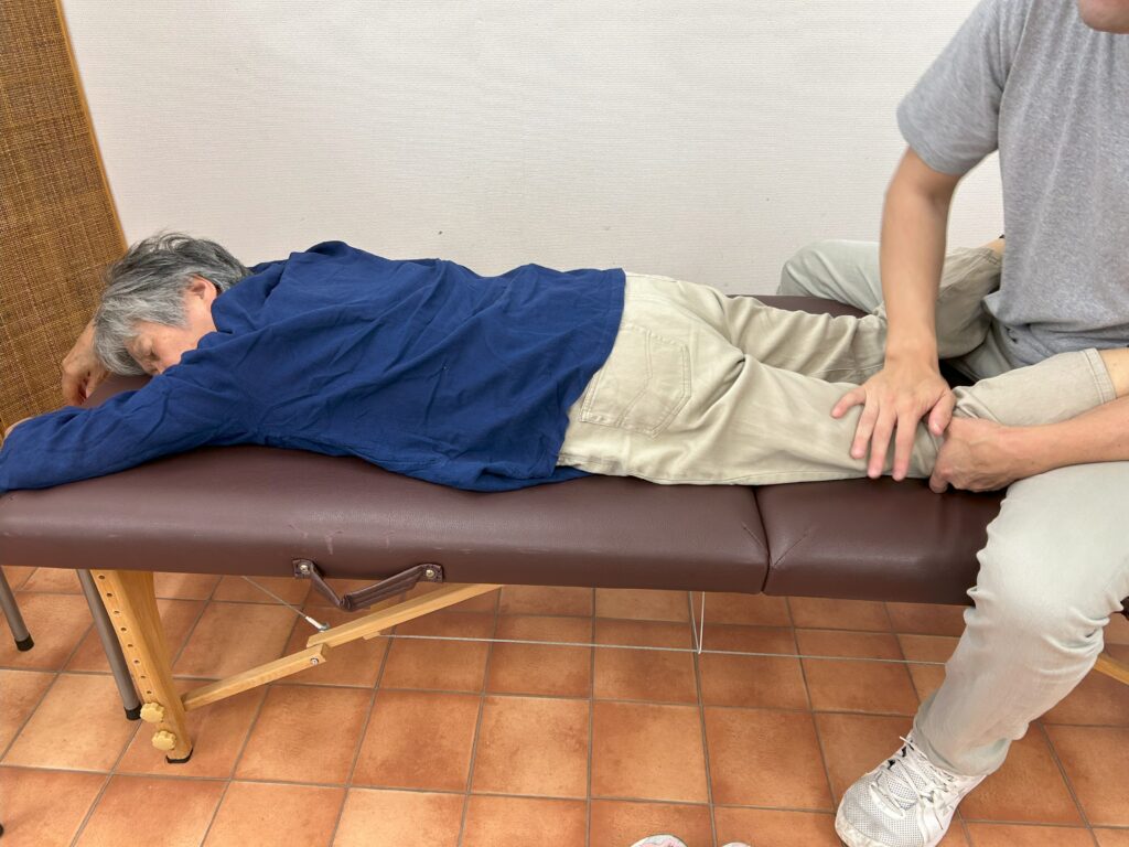 施術台に横になって、15分程度こりのほぐしなどを行います。